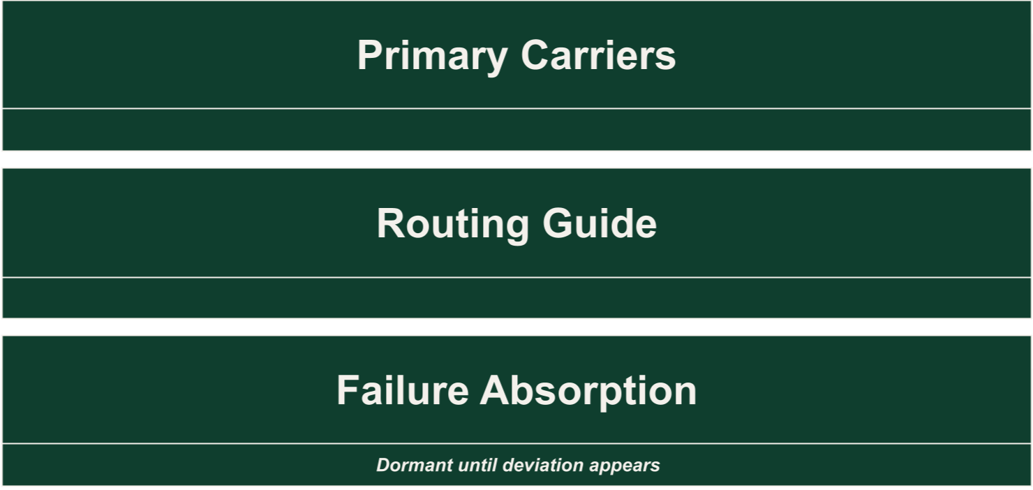 A continuity layer doesn’t replace your carriers. It doesn’t compete with your routing guide. It stays dormant until deviation appears.