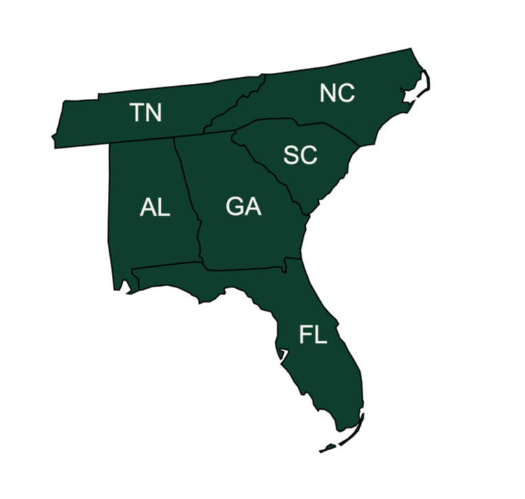 We operate exclusively in: AL • GA • FL • NC • SC • TN